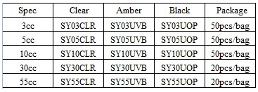 2.琥珀色抗UV点胶针筒----本产品可100%阻断紫外线,可见光透过30%,特别适合UV胶的长期贮存及长途运输的UV胶。